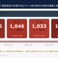 出典:厚生労働省「長時間労働が疑われる事業場に対する令和6年度の監督指導結果」(2025年8月25日公表)/香川労働局「令和6年度 監督指導結果」(2025年8月28日)/徳島労働局「令和5年度 監督指導結果」(2024年8月29日)/厚生労働省 2025年度地域別最低賃金一覧