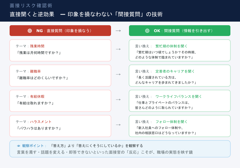 面接で実態を見抜く――印象を損なわないリスク確認の質問術