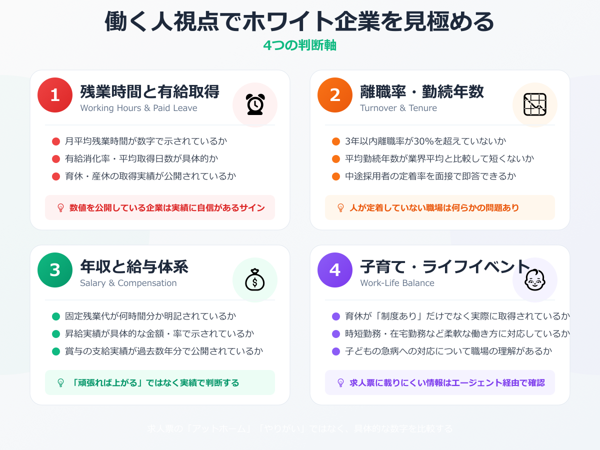 働く人視点でホワイト企業を見極める4つの判断軸