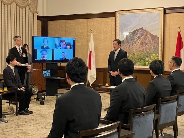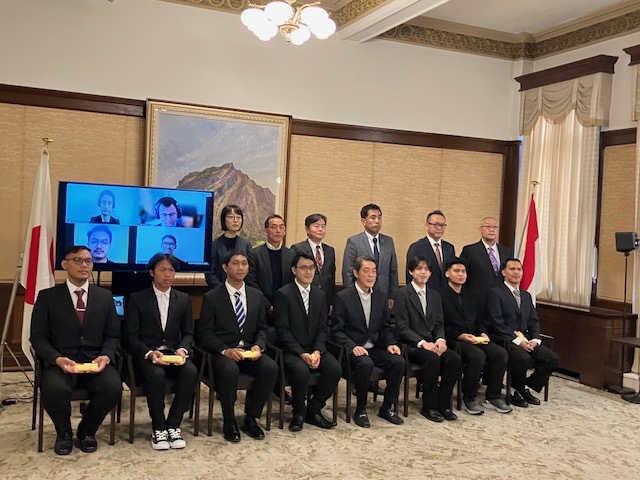 11名は愛媛県内の製造業、設計・製図業、卸売業、商社、ITなど6社に入社したもので、表敬訪問当日も午前中にビジネスマナー研修、午後は異文化適応研修を受講するなど、日本企業での就業に向けた準備を進める中で、表敬訪問に臨みました。