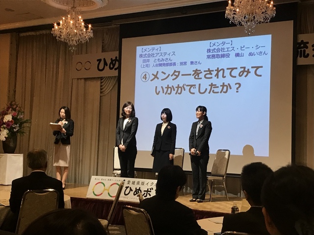 また、ひめボスメンター制度推進モデル事業として、組織・業種の枠を超えたオリジナルなメンター制度の構築を目指した事例発表に2名の松山オフィスメンバーが登壇しました。